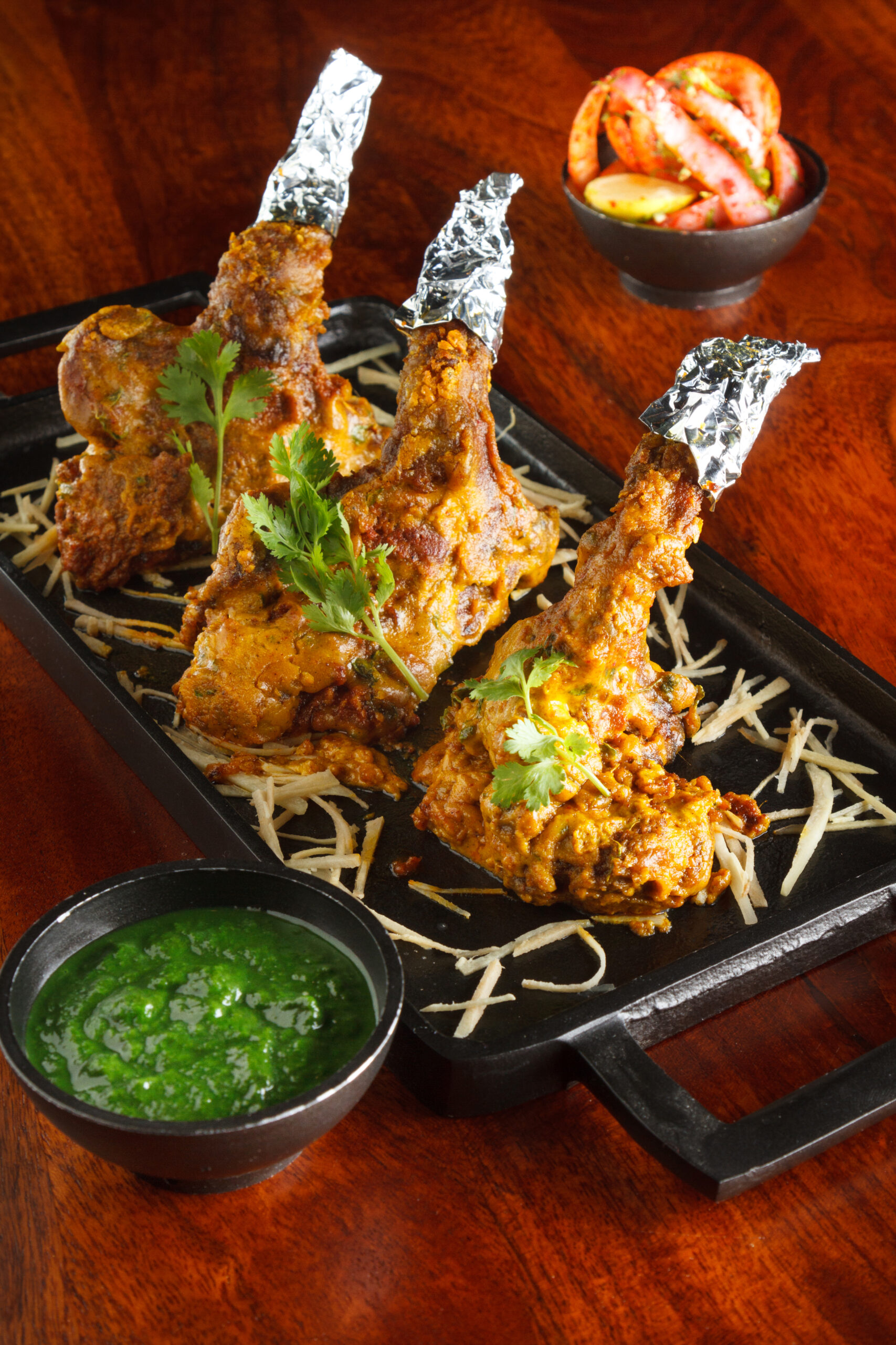marinated in aromatic spices and yogurt, then cooked in a traditional bha i or tandoor for a smoky, crispy, and flavorful treat.