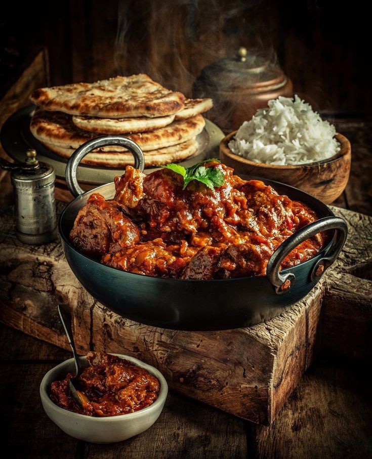 Lal Maas is a fiery Rajasthani dish, known for its intense heat and rich flavors. It features tender morsels of mu on, slow-cooked in a vibrant red chili-based curry, showcasing the bold and spicy culinary traditions of Rajasthan, India